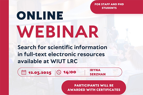 On March 12, 2025, Westminster International University in Tashkent (WIUT) hosted an online webinar titled "Search for Scientific Information in Full-Text Electronic Resources available at WIUT LRC."