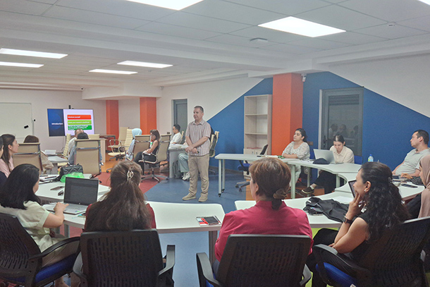 Presented by Islomjon Erkinxojiyev from the Learning Resource Centre (LRC), the second session introduced participants to the Web of Science research database. Attendees learned how to conduct efficient searches, evaluate academic sources, and track research trends relevant to their fields.